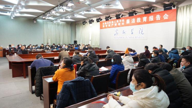 生物与环境工程学院、国有资产管理处全体教职工聆听了报告会。